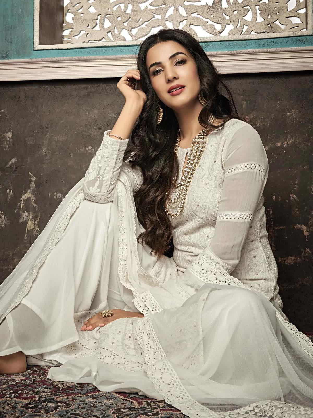 2. Chikankari dress is usually white in colour and is decorated with intricate and delicate embroidery.